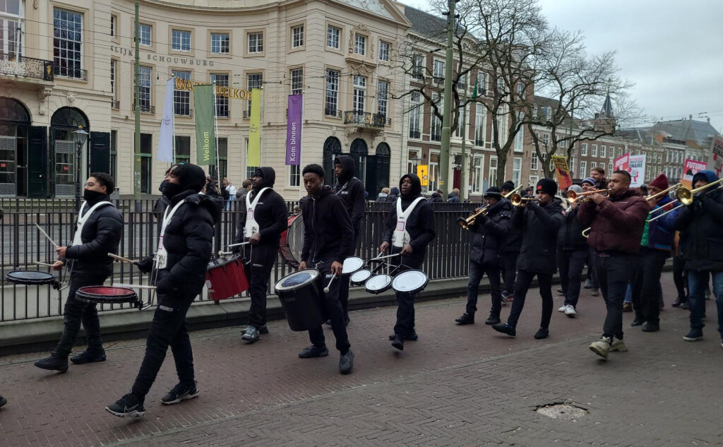 De tocht voerde langs de A12, de plek waar al zoveel Extinction Rebellion-blokkades zijn gehouden, naar de Tweede Kamer aan de Bezuidenhoutseweg. Daarna werd de actie afgesloten bij de ingang van het Paleis van Justitie aan de Prins Clauslaan. De band zorgde voor een opzwepende en strijdbare actiesfeer. En de speeches maakten eens te meer duidelijk hoe de inwoners van Bonaire de klimaatcrisis nu al aan den lijve ondervinden.