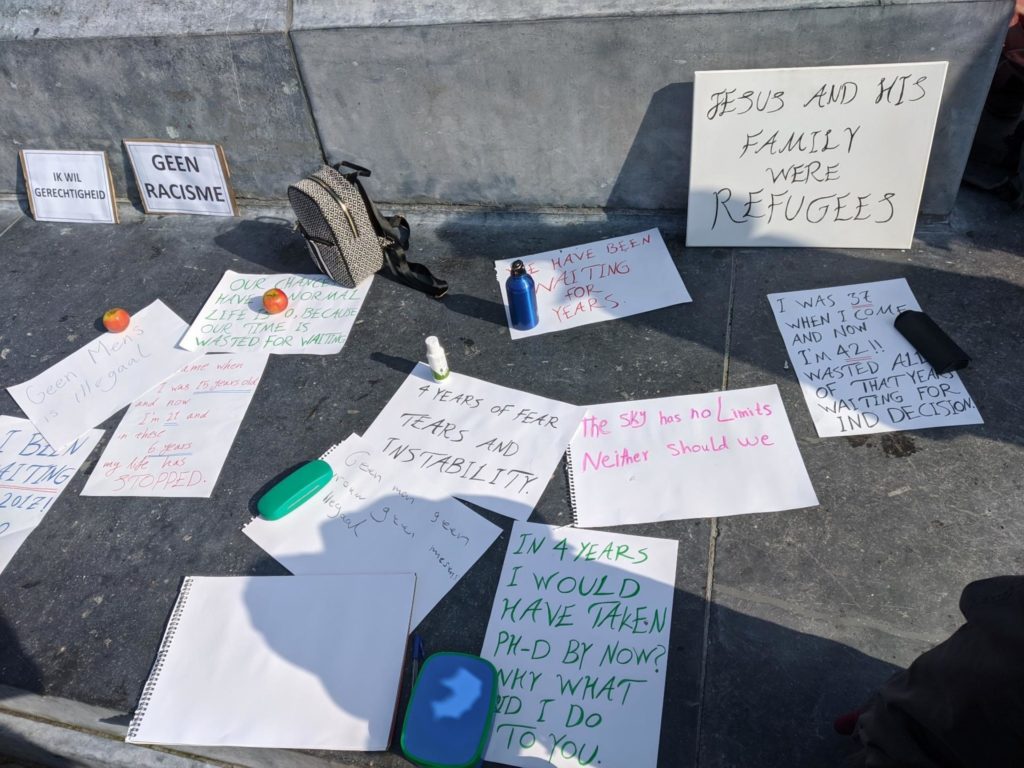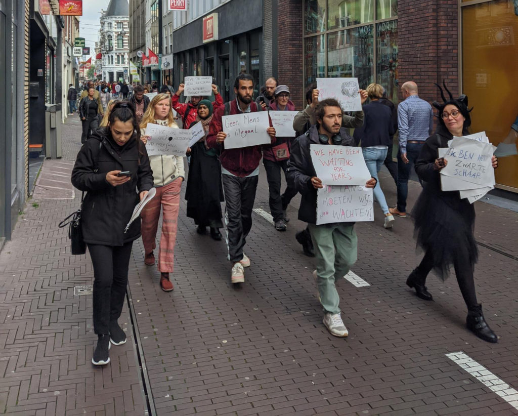 De laatste tijd komen er weer meer initiatieven van de grond van en voor mensen zonder verblijfsrecht. Zo is er strijd op het gebied van het kinderpardon, proberen vluchtelingen aandacht te krijgen voor de gedachte van een nieuw generaal pardon en hebben er flink wat demonstraties plaatsgevonden voor een vrij Afghanistan en verblijfsrecht voor alle Afghaanse vluchtelingen. De actie van vandaag was opgezet door vrouwen zonder verblijfsrecht. Zij willen na zo lang in onzekerheid en onveiligheid te hebben geleefd eindelijk een verblijfsvergunning krijgen, en daarmee eindelijk ook de kans op een betere toekomst.