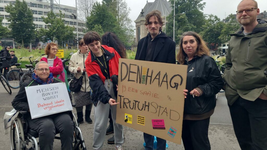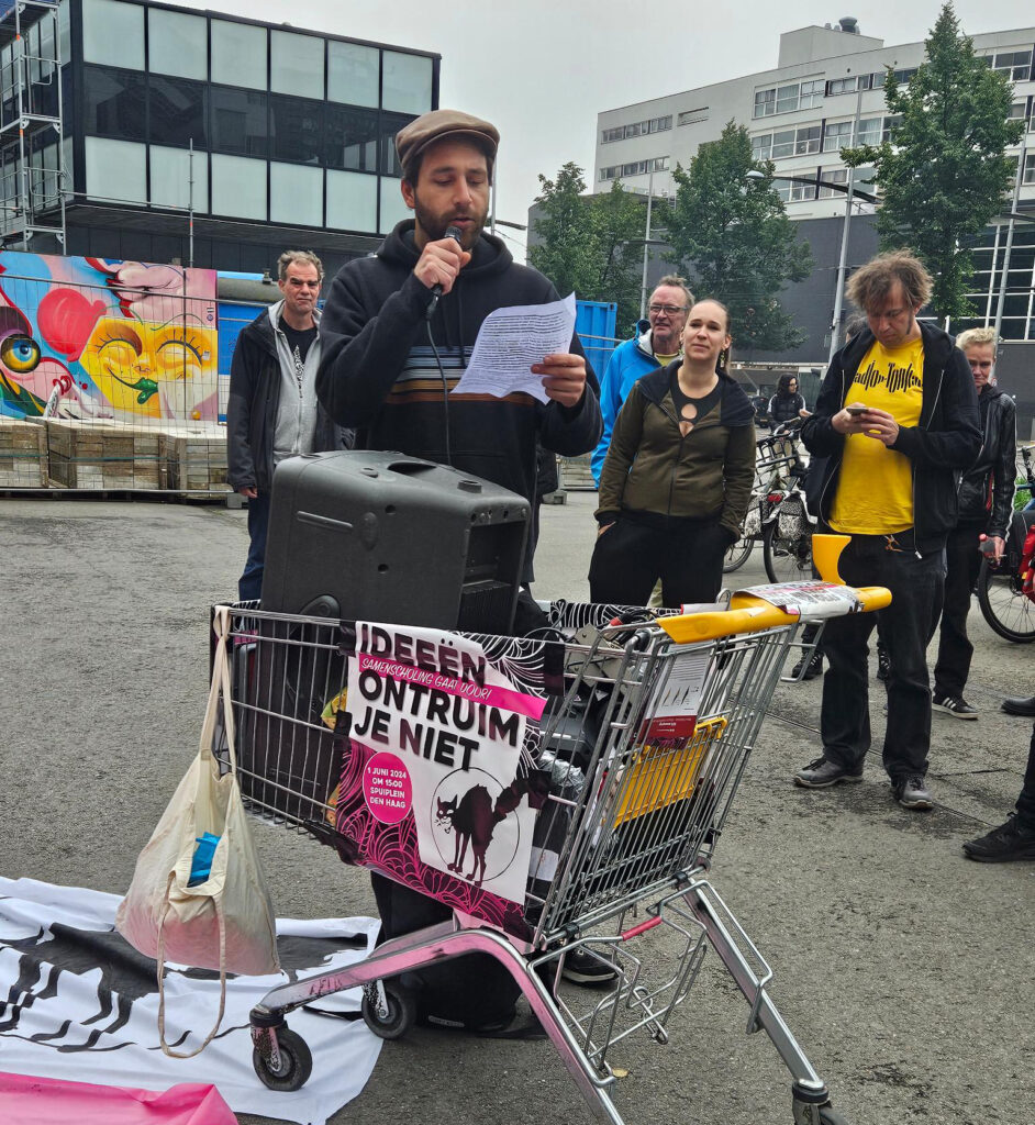 Het Oude RKZ in Groningen, OCCI, Molli en Vrankrijk in Amsterdam, ACU in Utrecht, Knoflook in Den Bosch, Landbouwbelang in Maastricht, Vrijplaats Leiden… en Den Haag? Hier lukt het maar niet om dat wat van onderop wordt opgebouwd op waarde te schatten. Onze stad kent een lange traditie van vrijplaatsen, van het Brullend Breekijzer en de Blauwe Aanslag langs de Illusie en de Vloek en de Samenscholing. Maar nee, alles dat wij de afgelopen jaren met hart en ziel hebben opgebouwd, is door de gemeente afgebroken. Wat overeind is gebleven, zijn de idealen achter deze plekken, en de behoefte aan, de noodzaak van een nieuwe vrijplaats.”