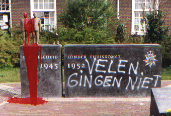 Op 24 april hebben leden van de actiegroep "Hulde aan weigeraars" het Leidse Indië-monument omgedoopt tot dienstweigermonument. Het is daartoe van een nieuw opschrift voorzien: "Velen gingen niet". Sinds geruime tijd ontbreekt een van de 3 soldaatjes op het monument. Zijn afwezigheid staat voortaan symbool voor hen die niet gingen, omdat ze weigerden deel te nemen aan de massale koloniale slachtpartij op meer dan 100.000 Indonesiërs. De twee soldaatjes op het monument die symbool staan voor hen die wel gingen, zijn met bloedrode verf overgoten.