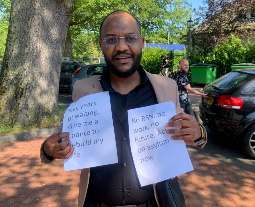“We don’t have any land now. We are homeless. And we deserve residence”, zo omschrijft een lid van de SRO de benarde situatie van Soedanese vluchtelingen die in vluchtelingenkampen al zo lang wachten op een beslissing van de IND op hun asielaanvraag. Ze leven in onveiligheid en bestaansonzekerheid, en hebben een verblijfsvergunning nodig om in Nederland een nieuw leven te kunnen gaan opbouwen.