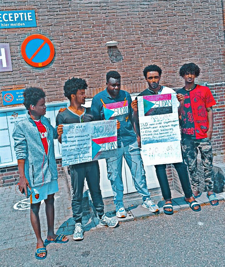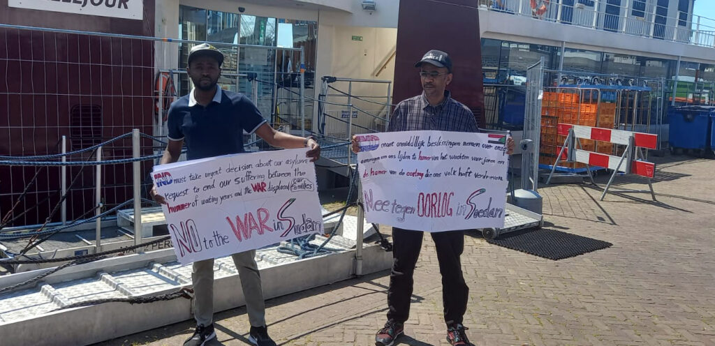 Op initiatief van de Sudanese Refugees Organization (SRO) hielden Soedanese vluchtelingen afgelopen dinsdag en donderdag een protestactie bij de ingang van de asielzoekerscentra waar ze verblijven. De actie richtte zich tegen het beleid van de IND en tegen de sinds 15 april uitgebroken oorlog in Soedan.