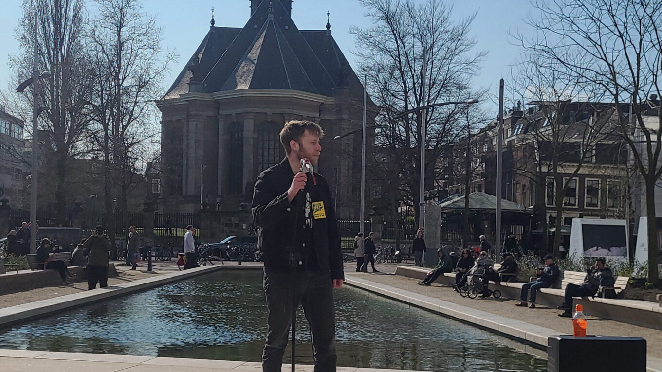 Koen (Bond Precaire Woonvormen) tijdens Haagse woonstrijdactie: “Laat vandaag een moment zijn dat we een tegenoffensief beginnen.”