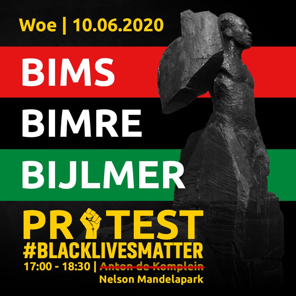Uit de oproeptekst: “George Floyd werd 25 mei op afgrijselijke wijze vermoord door de Amerikaanse politie. Inmiddels zijn we allemaal op de hoogte van het voortdurende politiegeweld tegen zwarte mensen in de VS. Ook in Nederland is politiegeweld tegen zwarte mensen dagelijks aan de orde. De Nederlandse politie maakt zich structureel schuldig aan etnisch profileren, institutioneel racisme en racistisch geweld. Daarom roepen we jullie op om woensdag 10 juni luid en duidelijk je stem te laten horen tegen anti-zwart geweld in het Nelson Mandelapark (Bijlmer, stadsdeel Amsterdam Zuidoost).