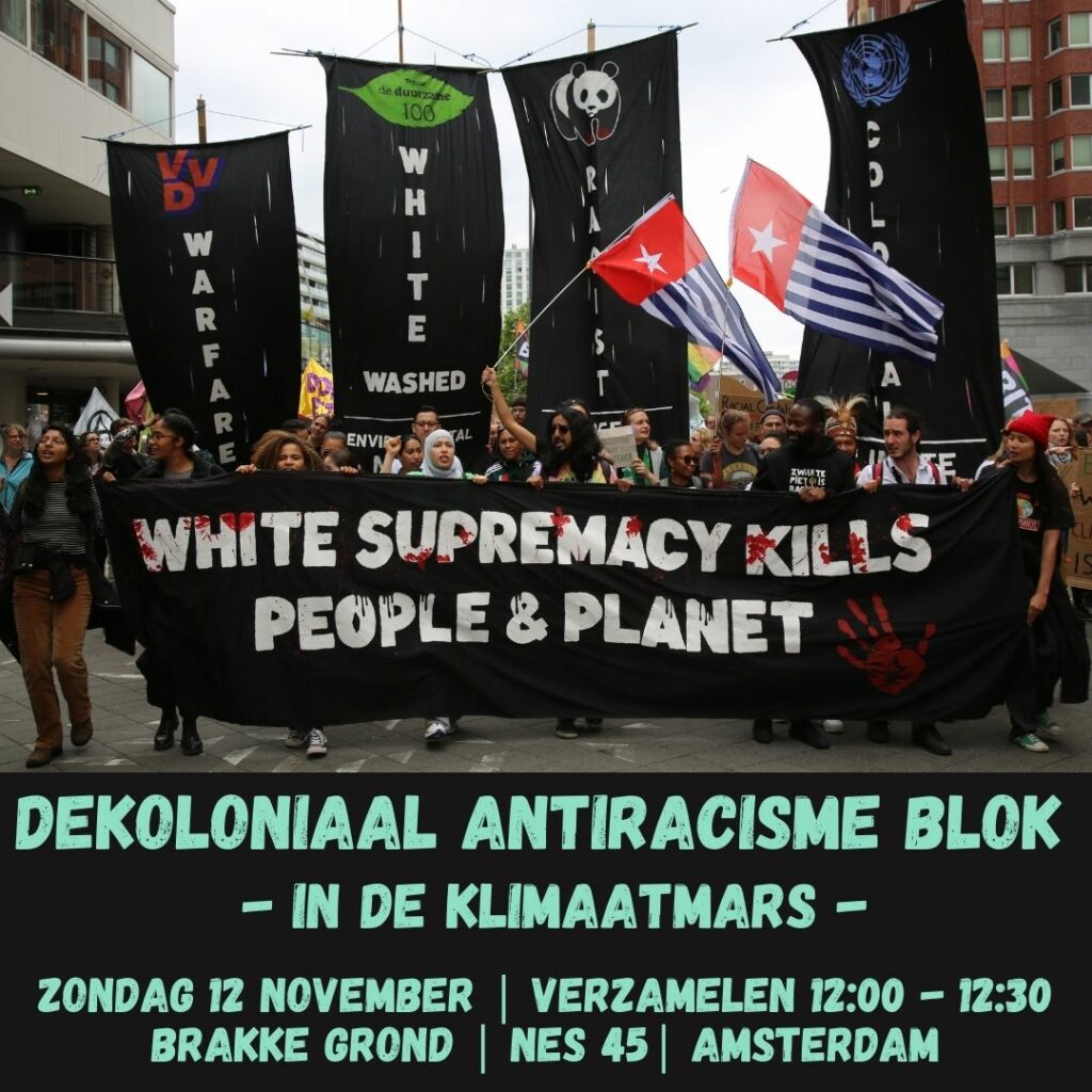 12 november, Amsterdam: dekoloniaal anti-racistisch blok bij de klimaatmars