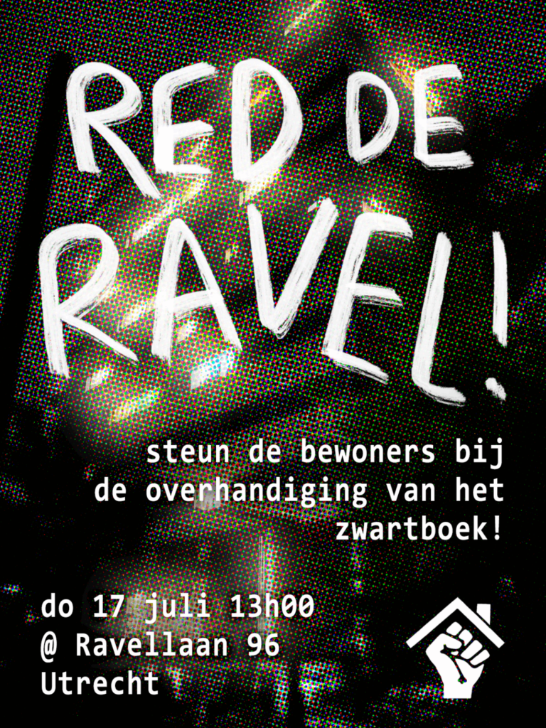 Uit de oproeptekst: “Op 19 mei 2025 zijn de laatste oorspronkelijke bewoners van de Ravellaan 96 uit hun huis gezet. In de Ravel woonden al tien jaar negen gemeenschappen van twintig mensen per verdieping samen, totdat hun tijdelijke contract afliep. Daarna kwamen zij in een stoelendans terecht: zij kregen geen huurdersrechten omdat de gemeente Utrecht wegliep van haar verantwoordelijkheid. In die tien jaar zijn er geen nieuwe plannen voor het gebied gemaakt. Toch werden de oorspronkelijke bewoners vervangen door 180 nieuwe rechteloze bewoners die de komende twee jaar wel de volle huur voor de kamers betalen. Alles om de winstmarges te maximaliseren. De oorspronkelijke bewoners zijn onvermoeibaar in gesprek gegaan, ze hebben actie gevoerd, en solidariteit getoond. Maar ondanks dat alles heeft de gemeente Utrecht haar plan doorgezet.