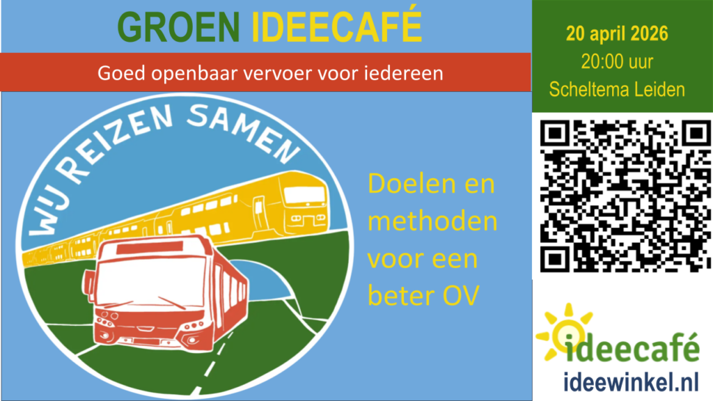 Op 20 april houdt de Leidse groep van de landelijke campagne #WijReizenSamen een presentatie in het kader van het maandelijkse Groen Ideecafé in Leiden. “Het Groen Ideecafé is dé ontmoetingsplek voor mensen met vragen, groene, duurzame ideeën en initiatieven in Leiden en de regio. Behalve een ontmoetingsplek is het Ideecafé een inspirerend platform”, aldus de initiatiefnemers van het Groen Ideecafé. #WijReizenSamen, waar ook Doorbraak aan meedoet, komt op voor een goed, toegankelijk, betaalbaar en bereikbaar openbaar vervoer.