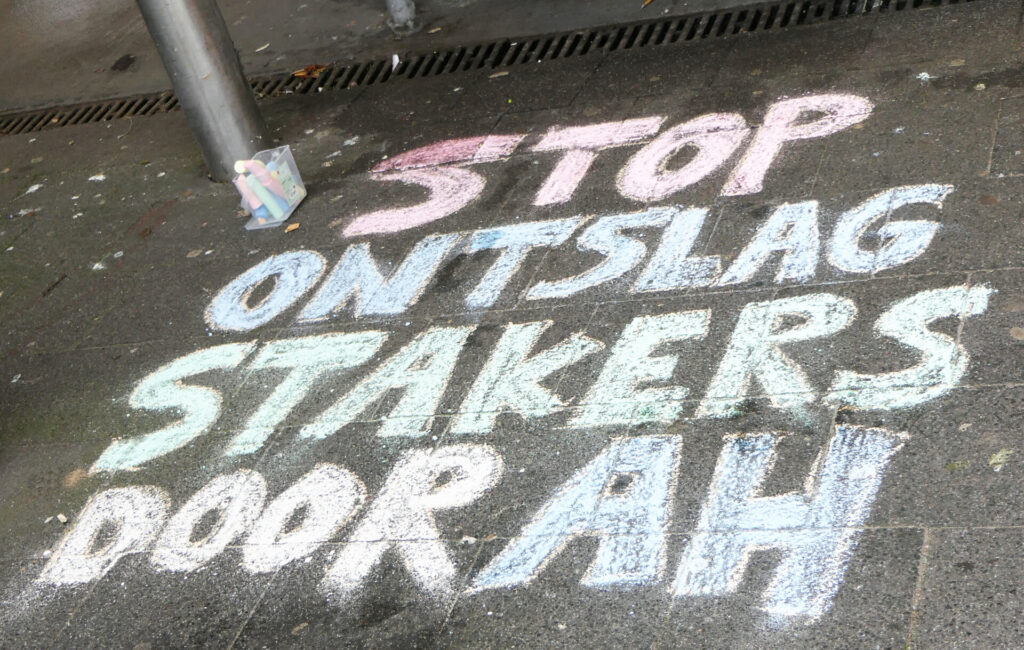 De afgelopen weken hebben we al een hele reeks acties georganiseerd, zie hier, hier en hier. Op dinsdag 23 december gaan we bij de Albert Heijn-vestiging aan het Martinus Nijhofflaan 7 in Delft onze solidariteit tonen met flyers en krijtleuzen op straat. Iedereen is welkom om mee te komen doen en Albert Heijn duidelijk te maken dat we het ontslag van Paweł niet accepteren!