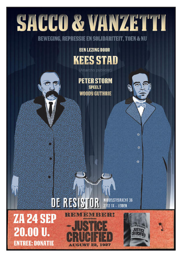 De “anarcho-publicist” Kees Stad geeft op 24 september in de Leidse Vrijplaats een lezing over Sacco en Vanzetti, twee wereldberoemde anarchistische activisten uit het begin van de vorige eeuw. “Exact 95 jaar geleden werden beiden in de Verenigde Staten na valse beschuldigingen ter dood gebracht. Het schijnproces leidde tot felle internationale kritiek: jaren van massale solidariteitsprotesten volgden, zowel in Amerika zelf als in Europa. Honderdduizenden mensen namen hieraan deel. Ook in Nederland gingen duizenden de straat op en in staking.”