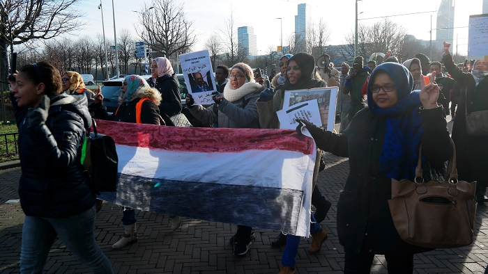 Beelden van het protest tegen de Soedanese dictator Al-Bashir vanochtend in Den Haag