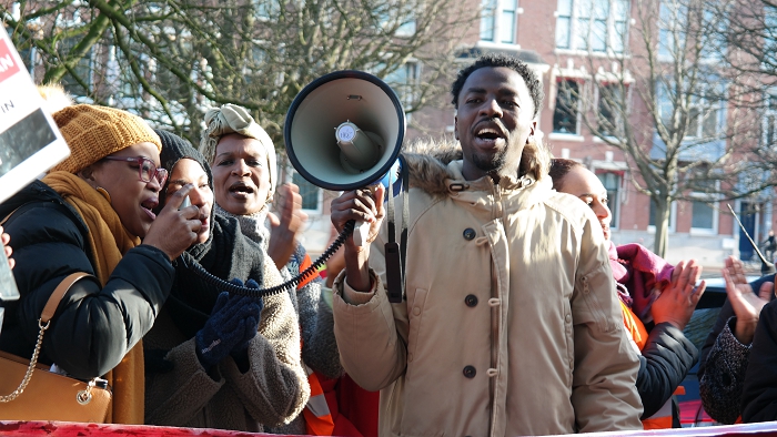De opstand in Soedan lijkt nog altijd van week tot week aan te groeien en het is geweldig dat er op steeds meer plekken in de wereld via dit soort protesten solidariteit wordt betoond. Het is alweer het vierde protest in Nederland sinds de opstand begon. De demonstraties van 24 december (Den Haag), 12 januari (Amsterdam) en 17 januari (Den Haag) waren steeds zeer strijdbaar.