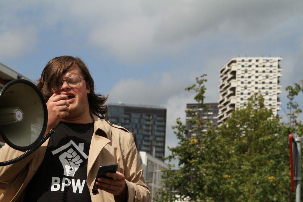 Bo Salomons (BPW) bij No Border-demonstratie: “De huizenmarkt is een machine die angst consumeert en omzet in winst”