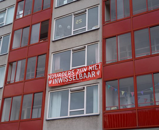 Bo: “Ik zou zeggen de grote tegenstanders waar we de strijd tegen moeten richten, dat zijn de verhuurders. Omdat onze belangen tegengesteld zijn. Zij willen veel huur vragen, wij willen weinig huur. We denken vanuit de huurder. Wie zit in een precaire woonsituatie en daar ligt de prioriteit. De tegenstander kan dus een klein huisbaasje zijn, maar natuurlijk komt de meeste propaganda en de meeste kracht uit die investeerdersbureaus. In de strijd die we met de verhuurders voeren, proberen we hun macht te kunnen tegenbalanceren. De overheid is een soort handlanger die het voor die verhuurders steeds makkelijker maakt. Het is niet de primaire tegenstander. Ze zouden zich ook voor ons kunnen inzetten, maar dat doen VVD, CDA en D66 en al die partijen niet. Ik zou zelf niet primair de pijlen op de overheid willen richten om hen tot wetgeving te bewegen. Het is beter als we zelf een beweging opzetten en het opnemen tegen huisbazen en tegen eigenaren en dan als de overheid ons tegenwerkt, zijn het ook onze tegenstanders, als ze met ons meewerken, nou, dank je wel.”