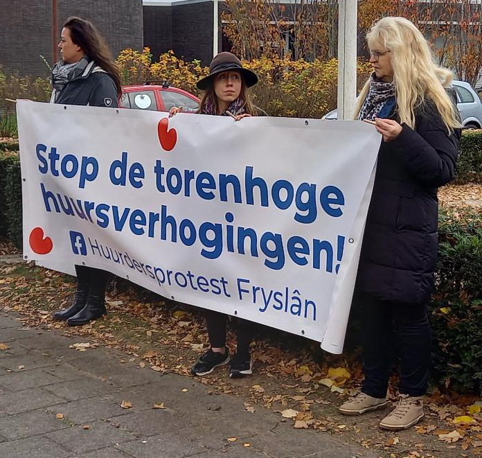 Vanochtend demonstreerden zo’n vijftien tot twintig mensen in Heerenveen tegen de torenhoge huurverhogingen in de sociale woonsector. Huurdersbelang Fryslân heeft voor dit jaar alle woningbouwcorporaties geadviseerd om niet de maximumverhoging van vijf procent door te berekenen, maar daar trokken die corporaties zich niets van aan. De organisator van het protest vanochtend, Huurdersprotest Fryslân, wil ook dat de “Rutte-afdracht” voor woningcorporaties