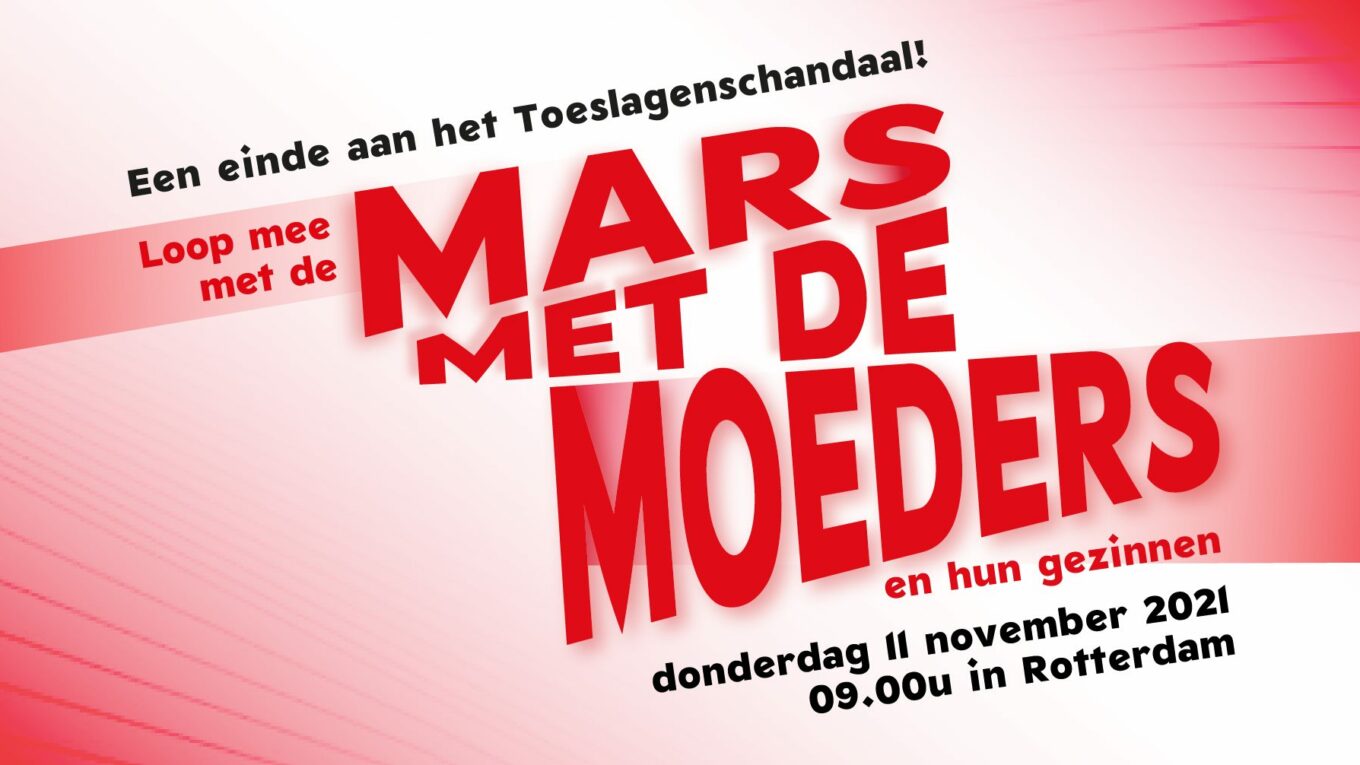 “Het aftreden van het kabinet, alle media-aandacht en een parlementair onderzoek hebben geen einde kunnen brengen aan het Toeslagenschandaal en de gezinnen geen schade- en eerherstel gebracht. Daarom komen wij in actie en lopen op 11 november 2021 met gedupeerden en medestanders de Mars met de Moeders”, aldus de oproep op de website Mars met de Moeders. “Waarom 11 november?