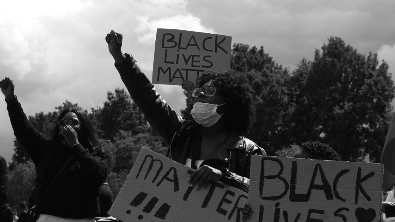 De motoragent koos de kant van een witte man die achter een zwarte vrouw aan rende