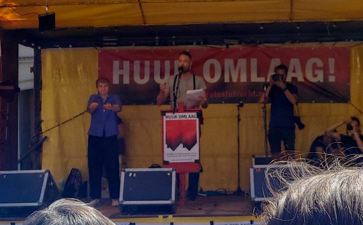 Vandaag hebben 15 activisten van onder meer Doorbraak, #WijReizenSamen en de FNV geflyerd en leuzen gekrijt voor de ingang van Albert Heijn XL in Leiden. (En ook in Haarlem was een krijtactie, zie onderaan.) Ze wilden zo solidariteit betonen met Paweł Rudzki, de door Albert Heijn/Ahold ontslagen Poolse magazijnwerker. Albert Heijn wilde van hem af omdat hij een van de
