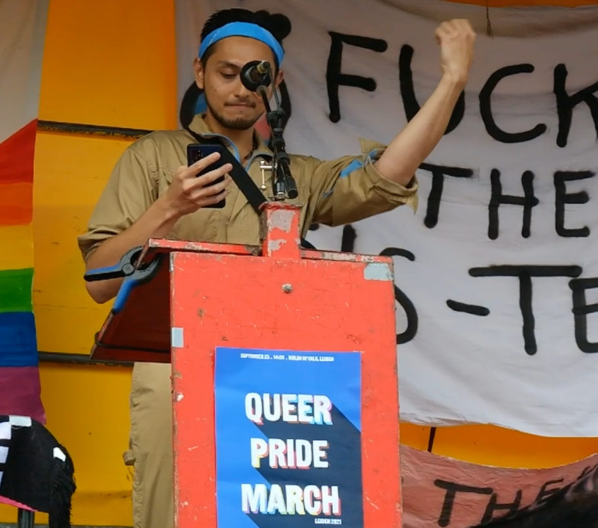 Zo’n 60 mensen, voornamelijk trans en andere queer activisten, deden gisterochtend mee aan een strijdbare protestactie tegen een conferentie die op hetzelfde moment op de Vrije Universiteit (VU) in Amsterdam plaatsvond. Een groep transhatende pseudowetenschappers kwam daar bijeen om trans jongeren de toegang tot hormoonblokkers te ontzeggen. “Een van de sprekers is Hilary Cass, auteur van het afschuwelijke ‘Cass Report’,
