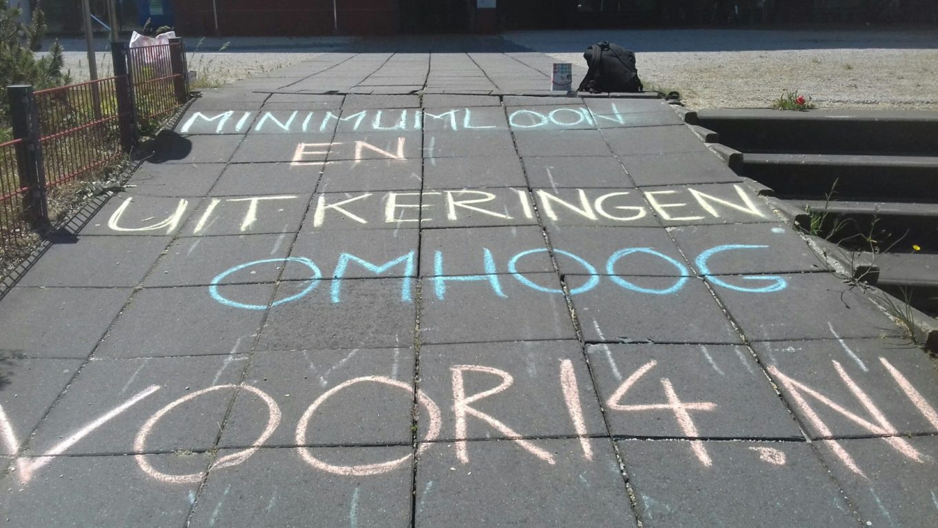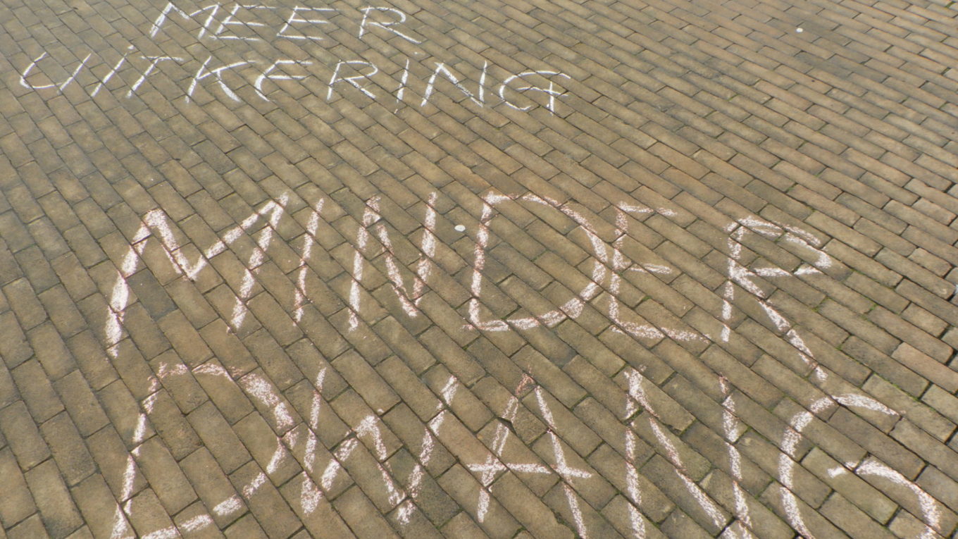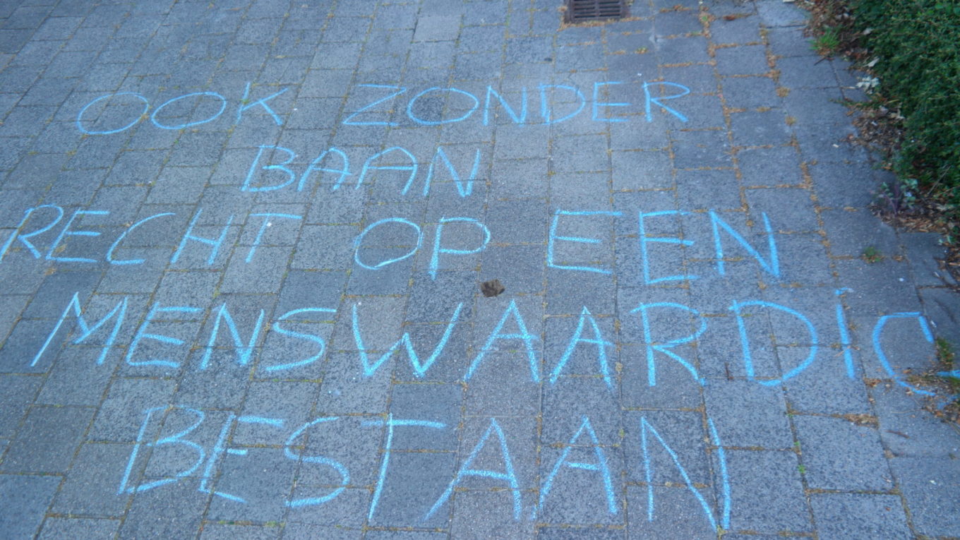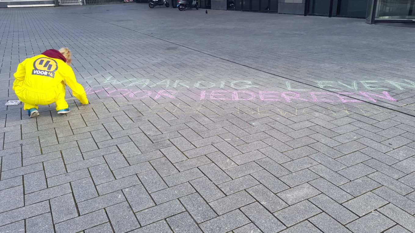 Vanavond hebben vier actievoerders van #Leidenvoor14, waaraan ook Doorbraak meedoet, gekrijt bij vier uitzendbureaus in Leiden. Bij #deallerleukstestudentenbaan op de Breestraat en om de hoek op het Kort Rapenburg bij De Koning, Luba en Olympia. Met enkele voorbijgangers en horecamedewerkers, die het helemaal eens waren met onze actie, hadden daarbij we goede gesprekken. Helaas moesten er weer twee boa’s komen