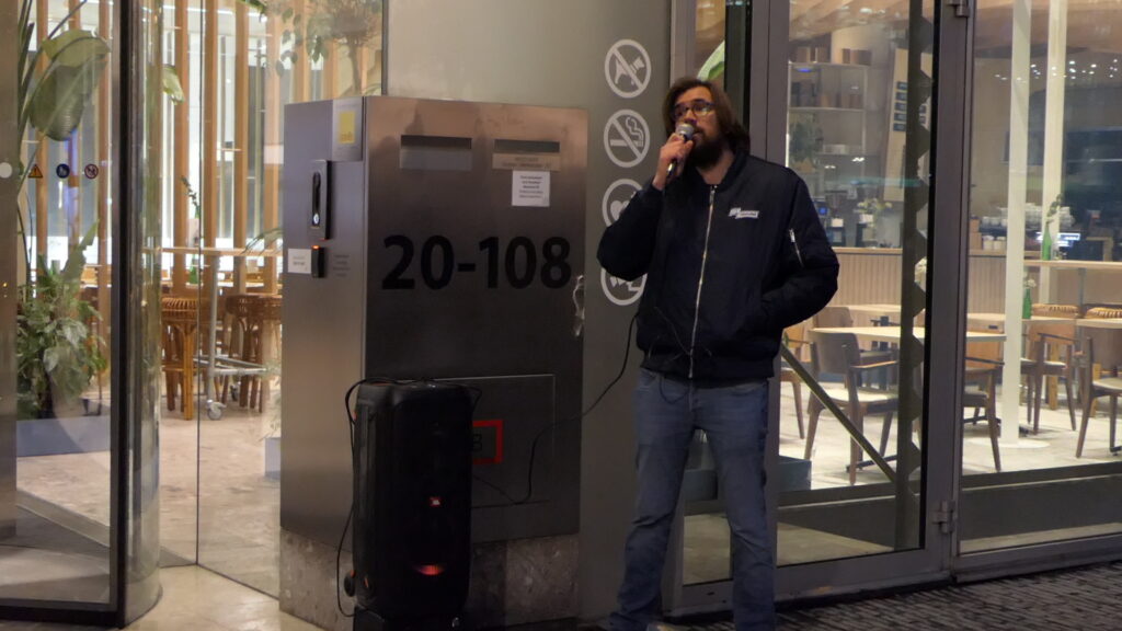 Fijn dat we hier met zoveel mensen tezamen zijn om gerechtigheid op te eisen voor Paweł Rudzki, uitzendkracht en vakbondsactieleider bij Albert Heijn.