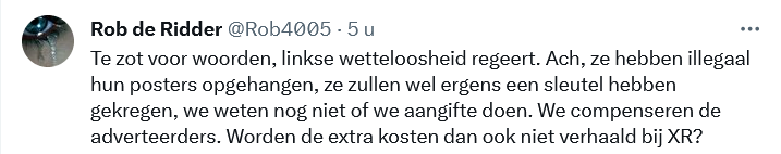 Als je er even over nadenkt, zou ieder redelijk mens zeggen dat de XR-posters te onschuldig zijn voor woorden. Een paar grote bedrijven (die hun geld terugkrijgen) hebben ff niet kunnen adverteren. So what. Maar er zijn zeker mensen die er anders over denken.