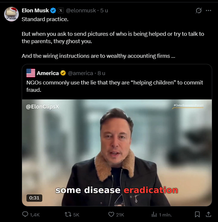 Elon Musk is daar zelf ook een grote deelnemer aan. Zijn posts worden door het algoritme elke tijdlijn op geslingerd, waardoor zijn samenzweringstheorieën een breed bereik hebben. En hij doet het niet eens voor het geld. Bij hem gaat het gewoon over gevaarlijke ideeën verspreiden.