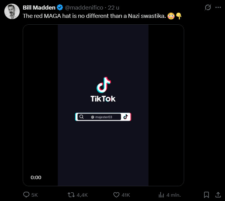 Een interessante omkering hiervan is zijn zogenaamd ‘linkse’ posts. Deze posts zijn juist ontworpen om boze Trump-supporters aan te trekken, waar er heel veel van zijn op X. Vaak zijn de posts expres zo gemaakt dat ze lijken op de waanbeelden die Trump-supporters hebben van links.