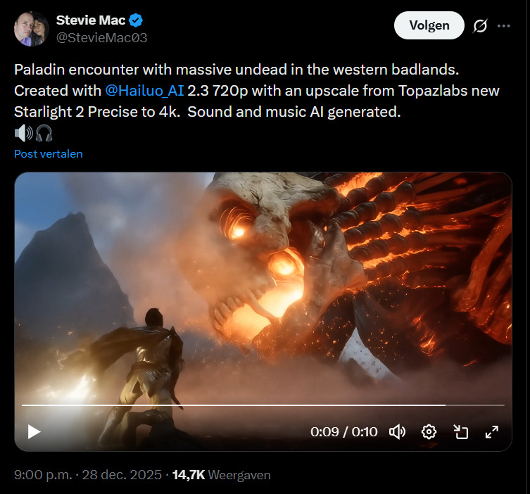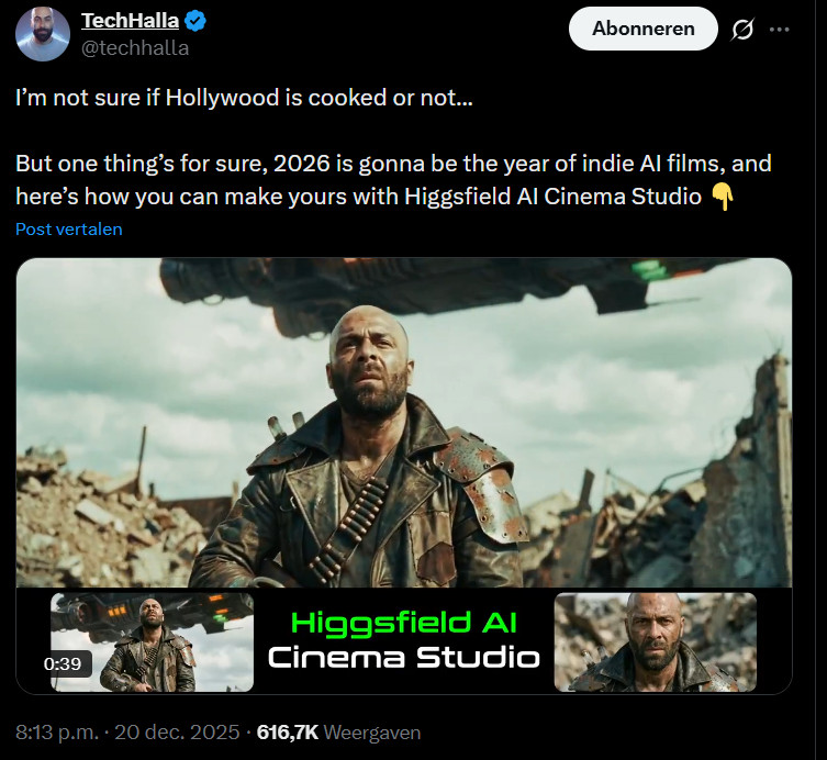En om AI af te sluiten: een laatste populaire trend is om te stellen dat Hollywoodfilms dood zijn omdat AI binnenkort hele films kan genereren. Vaak zijn het actiescénes zonder enige consistentie, zoals we van AI gewend zijn. Ook daar veel discussie.