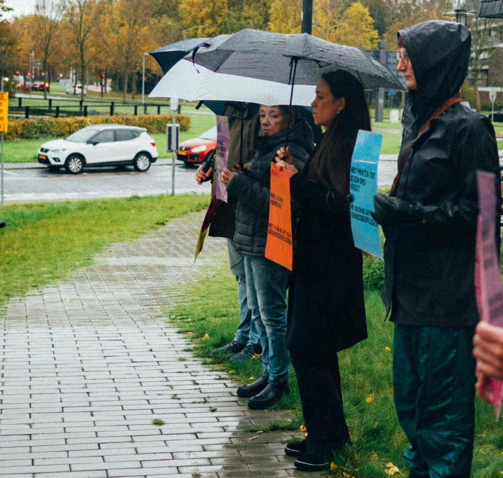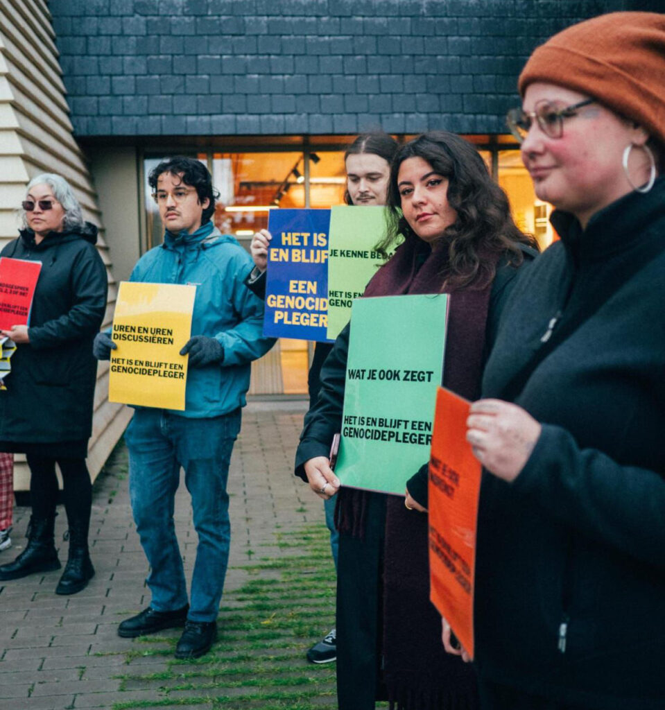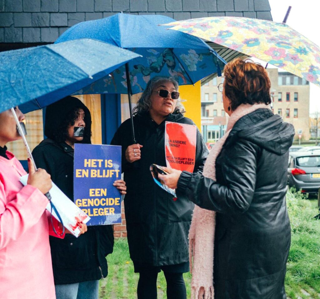 Tijdens het stilteprotest toonden de activisten posters die haarscherp duidelijk maakten dat de oeverloze stadsgesprekken en raadsvergaderingen over het standbeeld van Coen volstrekt overbodig zijn. Het standbeeld moet simpelweg verdwijnen uit de openbare ruimte. En Coen moet niet langer worden vereerd en verheerlijkt. De activisten eisen daarom: “1. Stop deze schijnparticipatie – géén daderverheerlijking onder het mom van ‘dialoog’. 2. Betrek de nazaten structureel in elk besluit over J.P. Coen en VOC-erfgoed. 3. Verplaats het standbeeld van J.P. Coen naar het museum – waar het hoort: met context, niet met eer.”