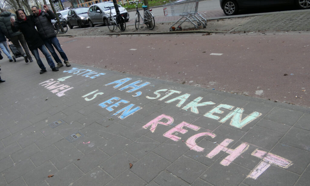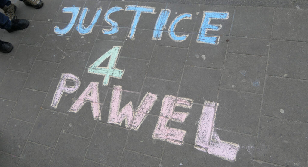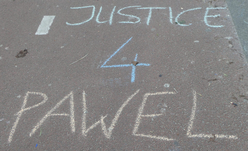Vandaag was de Albert Heijn XL in Delft aan de beurt voor een flyer/krijt-actie in het kader van de #Justice4Paweł campagne. Opnieuw werden er tientallen flyers uitgedeeld en leuzen op straat gekrijt bij de ingang van het filiaal.