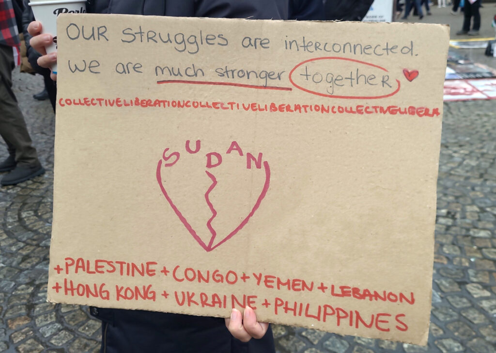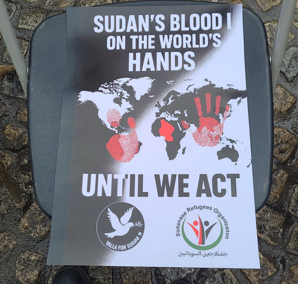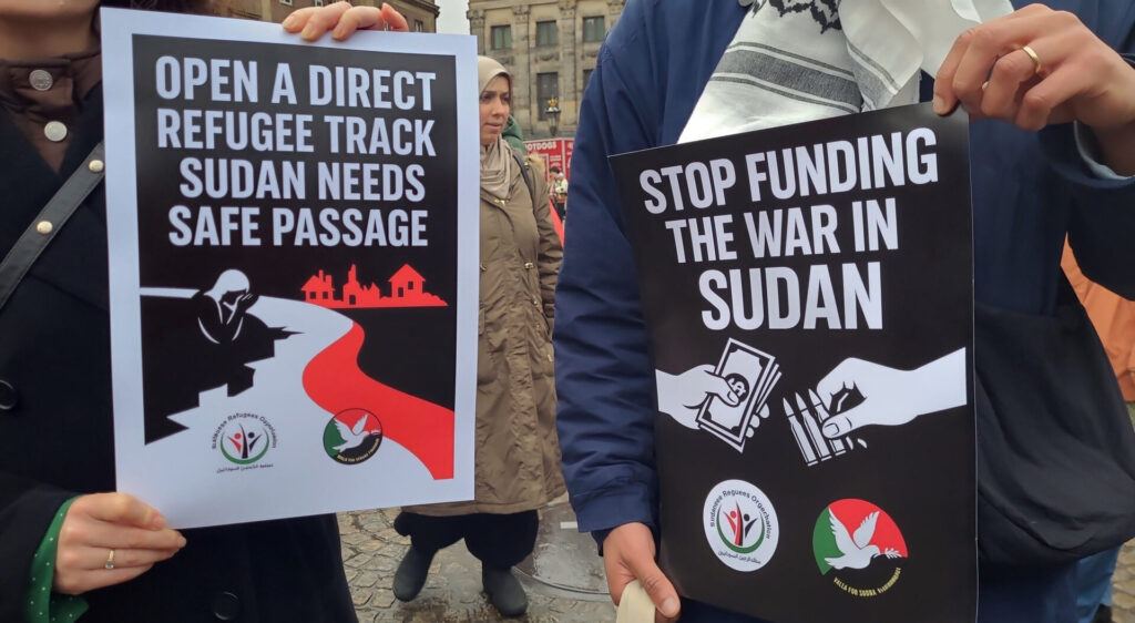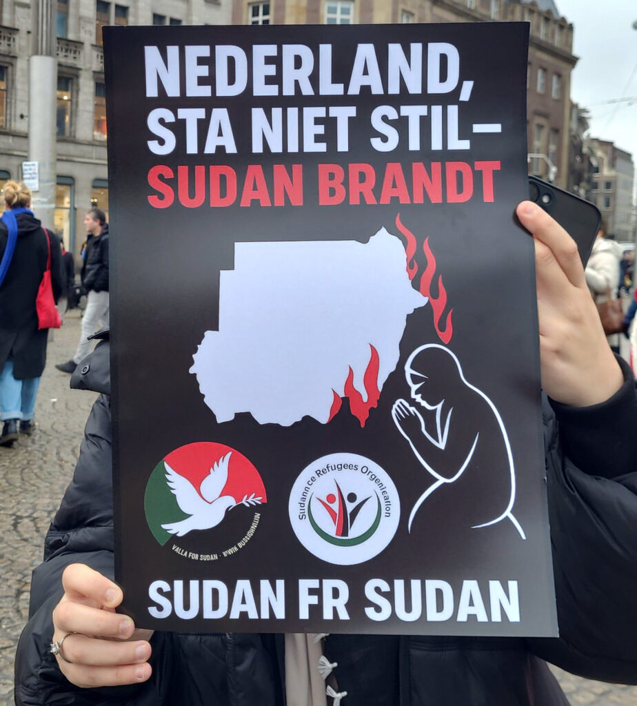 Die oorlog tussen twee militaire fracties, de Rapid Support Forces (RSF) en de Sudanese Armed Forces (SAF), is sinds april 2023 aan de gang. De bevolking van Soedan is daarvan het slachtoffer, met onnoemelijk veel doden, gewonden, vermisten, vluchtelingen en ontheemden als gevolg. De organisatoren van de demonstratie riepen en roepen daarom de Nederlandse regering en de EU op om zoveel mogelijk druk uit te oefenen om de genocide in Soedan te stoppen. En om de RSF aan te merken als een internationale terroristische organisatie. Bovendien moet de humanitaire hulp direct worden opgeschaald en dienen er sancties te worden opgelegd aan staten en bedrijven die de oorlog aanwakkeren. Verder moeten Soedanese vluchtelingen zo snel mogelijk veiligheid en verblijfsrecht in andere landen krijgen. En bij de opbouw van vrede en herstel moeten Soedanese organisaties van onderop centraal worden gesteld.