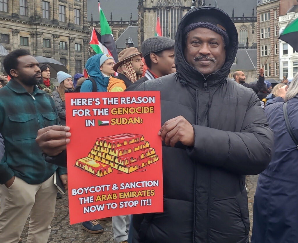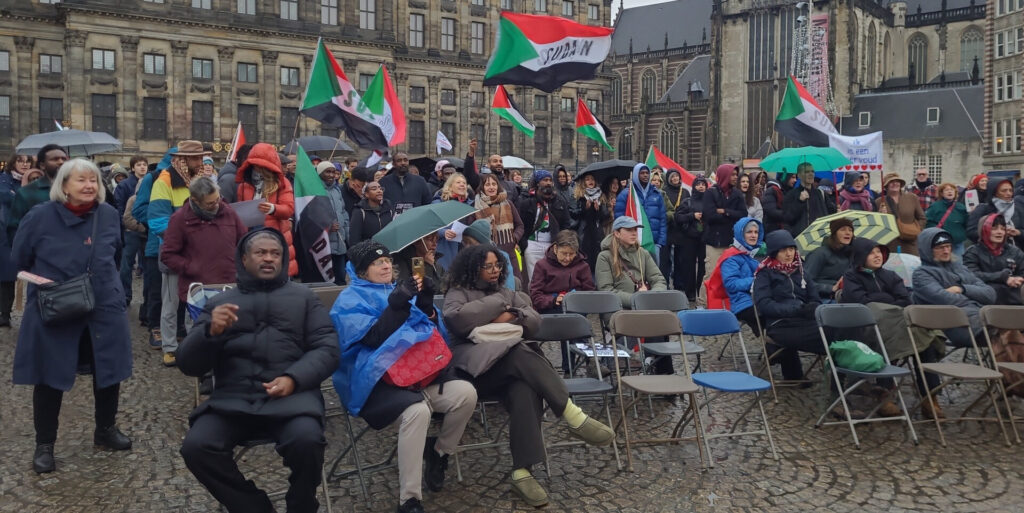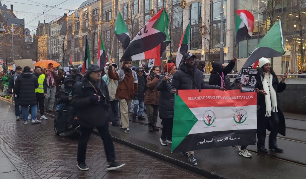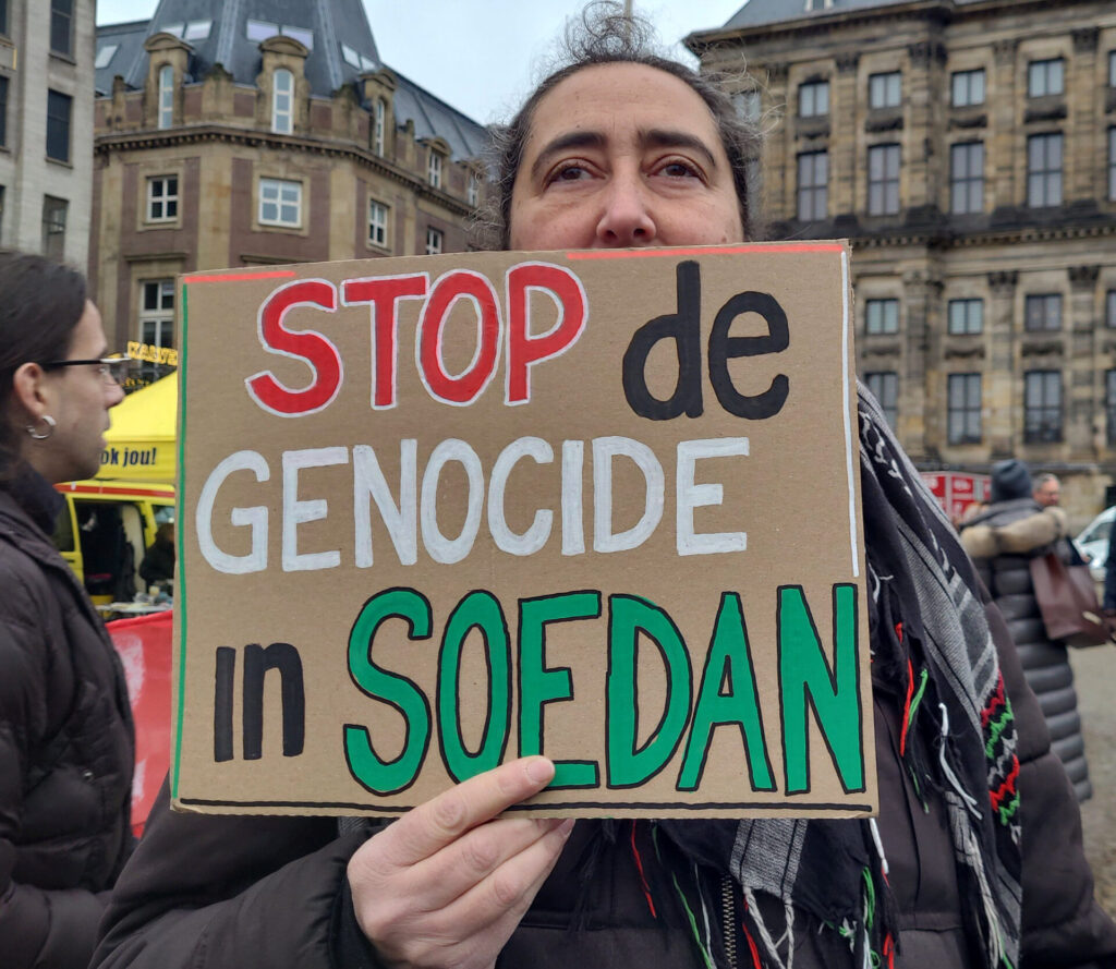 Afgelopen zaterdag deden in Amsterdam zo’n tweehonderd mensen mee aan de demonstratie tegen genocide en oorlog in Soedan. De actie was georganiseerd door Yalla for Sudan en de Sudanese Refugees Organization (SRO), met ondersteuning van andere groepen. Het was verheugend dat onder de demonstranten een grote diversiteit van mensen viel op te merken: Soedanezen, niet-Soedanese mensen van kleur en witte mensen. En het was bijzonder dat veel deelnemers de voortgaande genocide in Soedan plaatsten in een geopolitieke context. Ze legden een verband met de genocide in Palestina en wezen op de kwalijke rol die zoveel machthebbers en bedrijven in andere landen spelen bij het aanwakkeren van de oorlog in Soedan.
