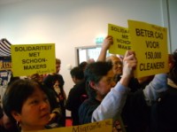 Er borrelt iets onder de huishoudelijk werkers en werksters zonder verblijfspapieren. Rijke Nederlanders maken al jarenlang graag en vrijblijvend gebruik van hun goedkope diensten. “Domestic workers” worden ze ook wel genoemd. Doorbraak vindt dat ze eerlijk betaald moeten worden en werknemersrechten moeten krijgen. Dat is echter gemakkelijker gezegd dan gedaan. Want hoe kunnen arbeiders strijden voor gelijke rechten als ze verbannen zijn naar de schaduwen van de samenleving? Doorbraak wil de domestic workers bijstaan in hun strijd. Het is belangrijk om verzet op te bouwen tegen de illegalisering en uitbuiting van arbeiders en arbeidsters. En om hen bij te staan in het verbeteren van hun vaak schrijnende levensomstandigheden. Centraal staan vanzelfsprekend de zelforganisaties van de domestic workers en de lijnen die zij zelf uitzetten. United Migrant Domestic Work heeft vijf eisen: |