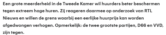 Het begint al in de inleiding. De Kamer wil een bescherming tegen “extreem” hoge huren. Huren moeten “eerlijk”. Men is dus niet eens tegen alle hoge huren, alleen tegen wat zij “extreem” noemen. Wat een extreme of eerlijke huur is, verschilt natuurlijk per persoon.