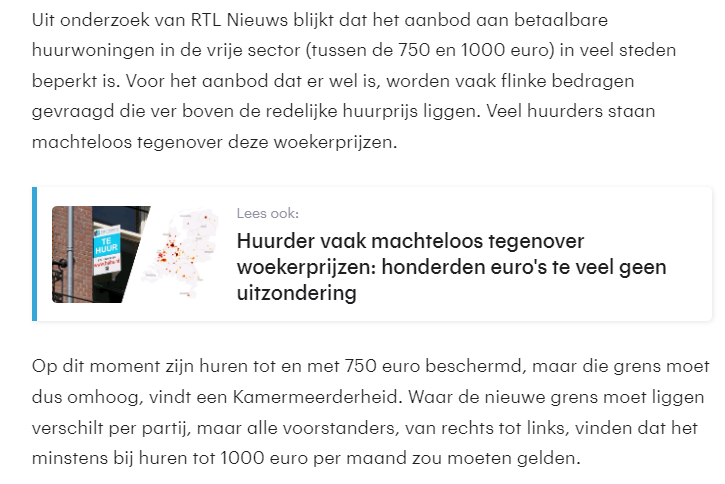 “Kamermeerderheid wil einde aan torenhoge huren en eerlijke huurprijs afdwingen”, kopte RTL in mei 2021. Het woonbeleid is een bijzondere samenkomst van omstandigheden: een woning is een eerste levensbehoefte, de grootste uitgave van huishoudens, maar het genereert veel winst. De politieke onmacht resulteert daarom in een boeiend boeket aan eufemismen.