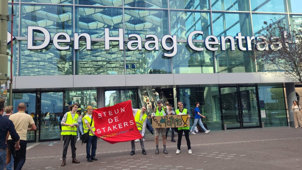Ook deze week hebben WRS-activisten veel tijd en energie gestoken in het mobiliseren voor het ondertekenen van de stakingspetitie en dus in het uitbouwen van de solidariteit met ov-werkers. Afgelopen dinsdag gingen WRS-activisten in Den Haag op bezoek bij stakende NS-werkers en actievoerende HTM-werkers. De dag erna, woensdag, gingen leden van de Leidse WRS-groep bij station Leiden Centraal flyers uitdelen en treinreizigers oproepen om solidair te zijn met de stakende NS-werkers. En gisteren was het de beurt aan leden van de Haagse WRS-groep om bij de ingang van station Den Haag Centraal treinreizigers te vragen om de NS-stakingen te steunen. De bereidheid om dat te doen bleek groot onder reizigers, hoewel mainstream media de laatste week die reizigers steeds tot slachtoffers hebben gebombardeerd van NS-personeel dat zich zogenaamd te hebberig zou opstellen en te veel aan het eisen zou zijn. Maar de reizigers met wie WRS-activisten de afgelopen tijd in contact kwamen, toonden zich veelal solidair richting de ov-werkers en begrepen drommels goed dat het voor een goed ov noodzakelijk is dat er bij het ov ook goede arbeidsvoorwaarden zijn.