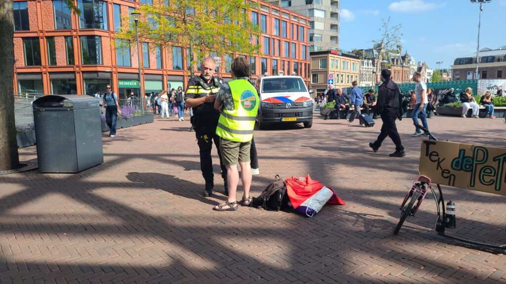 Het WRS-team dat woensdag handtekeningen ophaalde bij Leiden CS.