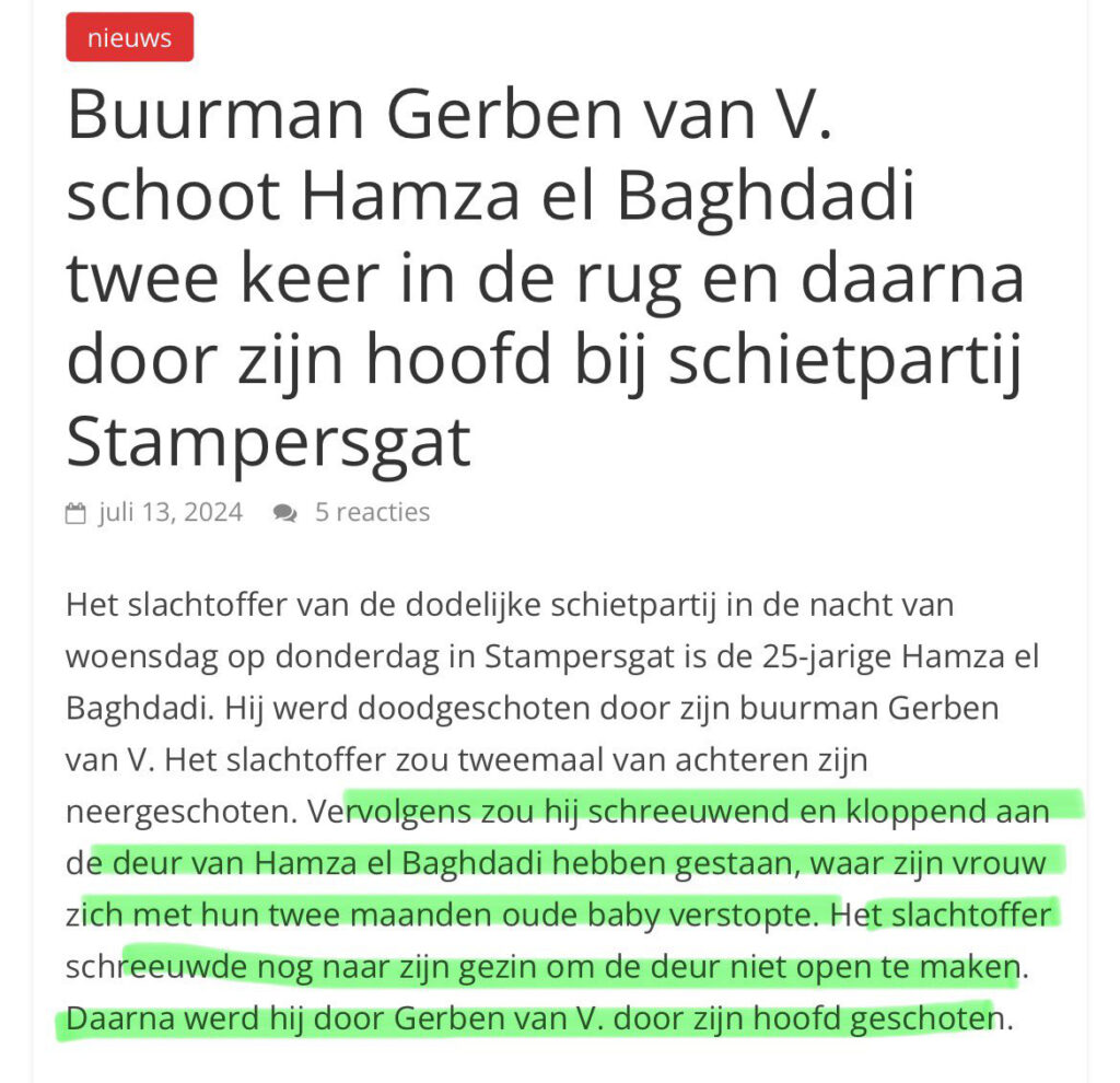 Voordat we op de dader ingaan, sta ik eerst een moment stil bij het slachtoffer. Hamza el Baghdadi was een 25-jarige man uit Stampersgat. Hij was net vader geworden. Hij laat veel vrienden en geliefden na. De familie verzoekt om geen contact op te nemen.