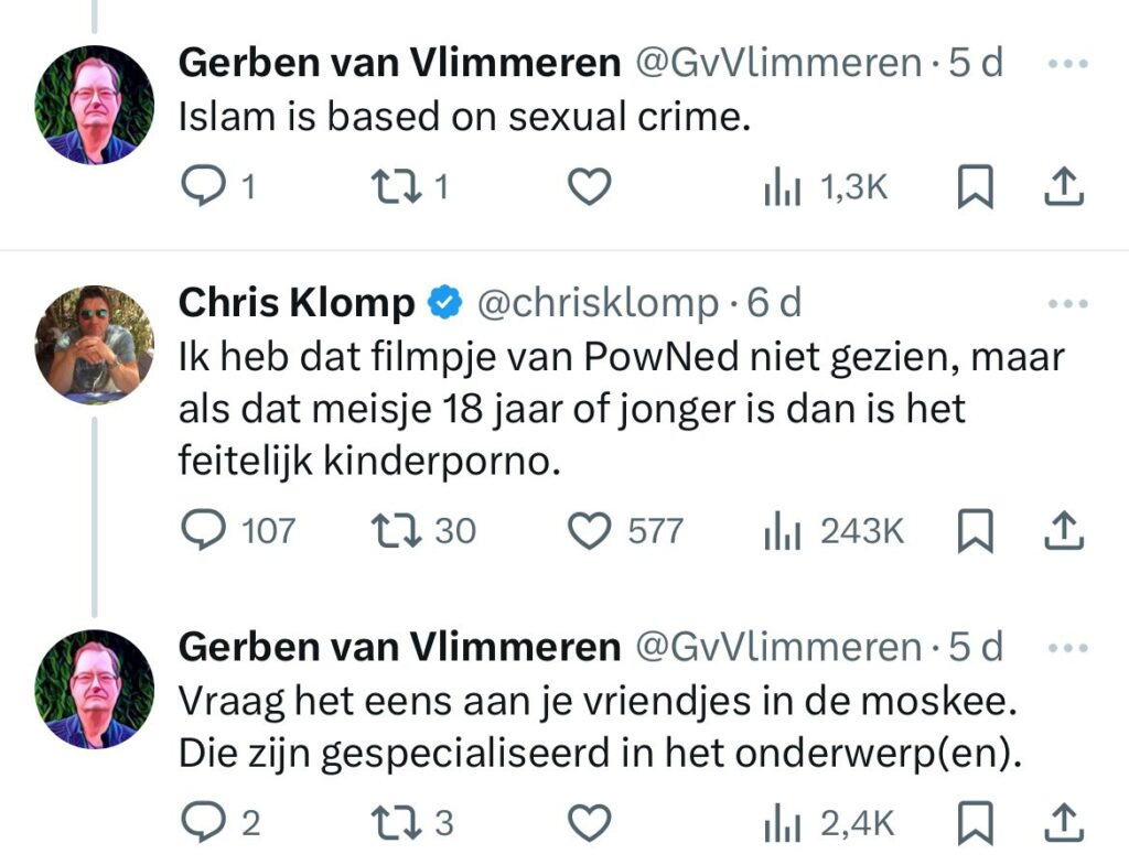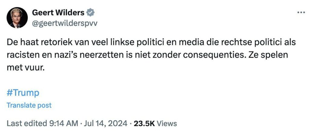 De NOS laat vandaag uitgebreid de verdachte aan het woord. Als argeloze lezer denk je dan bijna dat er geen vuiltje aan de lucht is, gewoon een uit de hand gelopen burenruzie dus. Wilders, Musk en andere haatzaaiers wassen hun handen alvast in onschuld, net zoals Wilders al eerder bij Breivik deed.