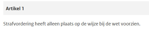 In dit geval is er, op meerdere manieren, strijd met het formele legaliteitsbeginsel, opgenomen in artikel 1 van het Wetboek van Strafvordering. De enige manier waarop de staat mag straffen, is op de manier die bij wet is voorzien.