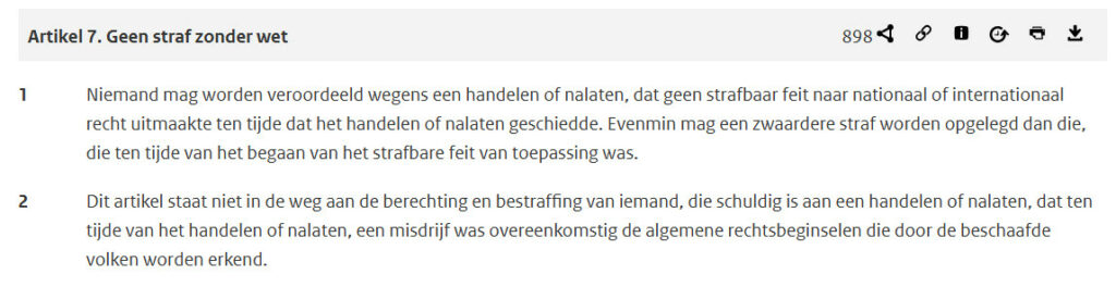 Dit beginsel is onder meer vastgelegd in artikel 7 van het Europees Verdrag inzake de Rechten van de Mens (EVRM), en artikel 15 van het Internationaal Verdrag inzake Burgerrechten en Politieke Rechten (IVBPR). Het zijn beginselen van fundamenteel belang voor een rechtsstaat.