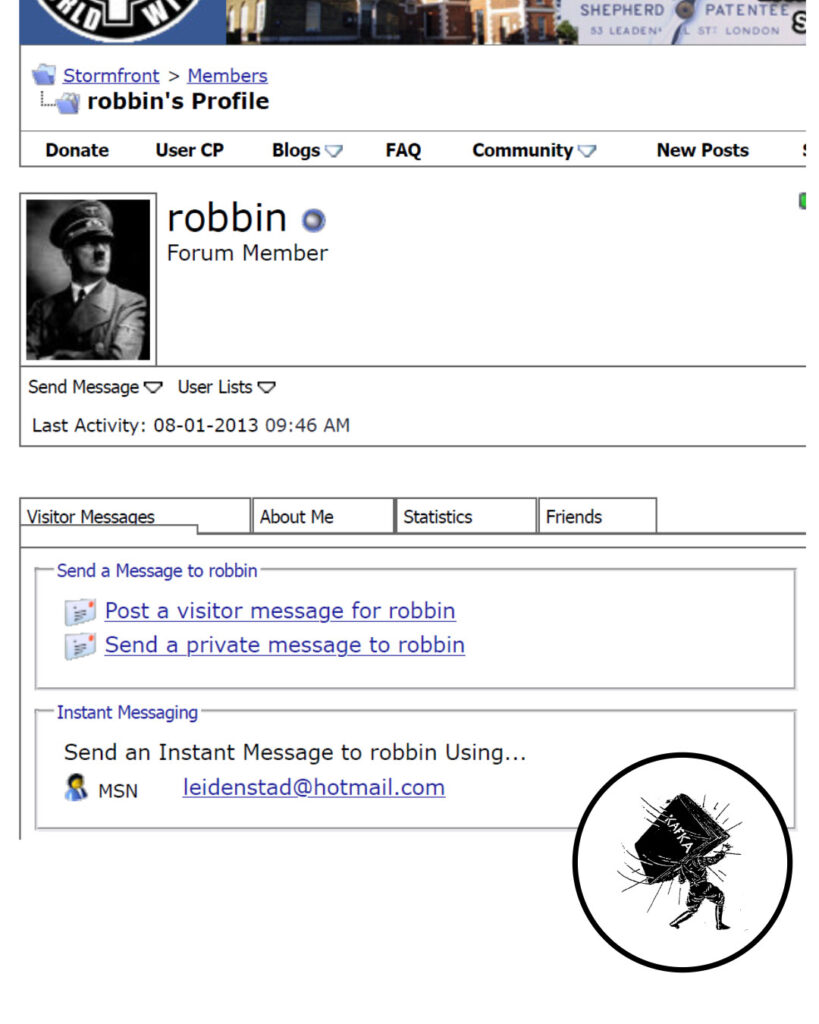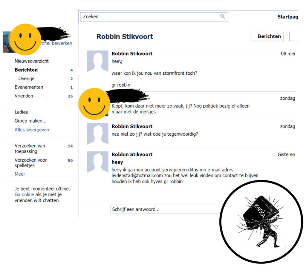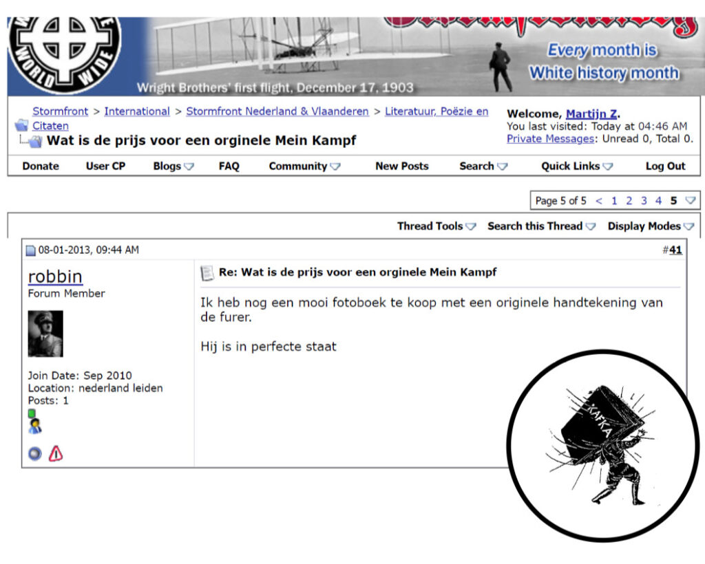 Stikvoort is een oude bekende van Kafka. In 2010 maakte hij een profiel met een avatar van Adolf Hitler aan op het neo-nazistische internetforum Stormfront.