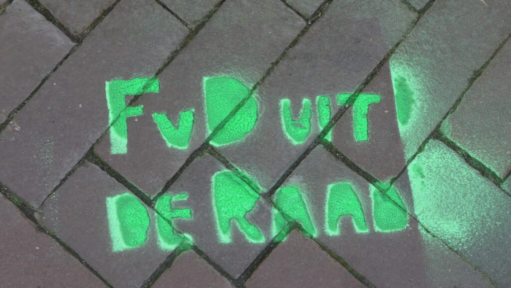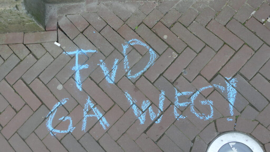 “FvD uit de raad!” – Krijtactie vooraf aan de installatie van nieuwe Leidse raadsleden