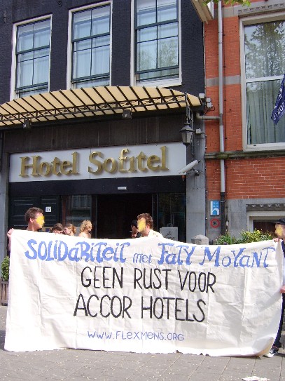 ...en tegen het Sofitel hotel van de Accor-keten, die een Parijse vakbondsactiviste heeft ontslagen.