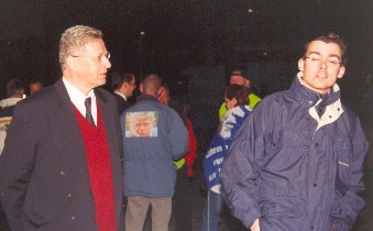 Op 4 november 2004 herdenken Wim Vreeswijk (links) en Jaap de Wreede (rechts) de dood van Theo van Gogh tijdens een extreem-rechtse manifestatie in Amsterdam |