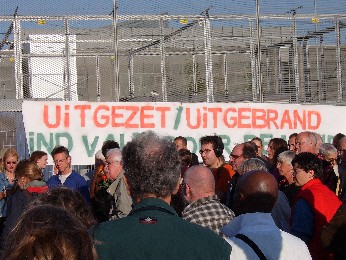 Herdenking bij uitzetgevangenis Schiphol-Oost (Foto: Eric Krebbers) |