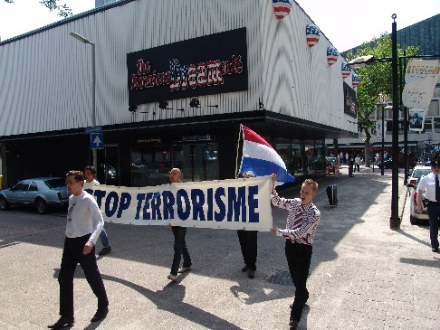 Nieuw Rechts demonstreert tegen terrorisme. Rechts loopt Robin Tolsma, lijsttrekker van Nieuw Rechts Almelo |