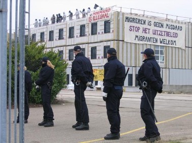 "Als hier een vertrekcentrum voor afgewezen vluchtelingen komt, dan ben ik geen wethouder meer", zei wethouder Egberts stoer tijdens de benefietmanifestatie "Stop deportaties nu!" in 2004 in Krommenie. Op zijn weblog verklaarde hij zich een voorstander van een generaal pardon voor de groep van 26 duizend afgewezen vluchtelingen.(3) Maar nu speelt hij onder één hoedje met Justitie. Om critici de mond te snoeren, maakt hij een fictief onderscheid tussen aan de ene kant vertrekcentra met uitsluitend afgewezen vluchtelingen en aan de andere kant uitzetgevangenissen met "illegale vreemdelingen" die geen van allen een asielachtergrond zouden hebben. "Dit zijn mensen die geen enkel verzoek hebben ingediend om hier te mogen blijven. Geen verzoek voor asiel, geen verzoek om hier te mogen werken, geen verzoek tot familiehereniging. Helemaal niets", aldus de wethouder, die daarmee volledig uit zijn nek kletst. Onder "illegale vreemdelingen" vallen namelijk alle mensen zonder papieren, dus ook "afgewezen vluchtelingen". Wie ook maar enige ervaring heeft met gevangenen in illegalenbajessen, weet dat daar juist ook vluchtelingen zitten opgesloten die als criminelen worden behandeld. Dat blijkt keer op keer het geval, bij de Rotterdamse bajesboten (4) en bij andere deportatiegevangenissen.(5)