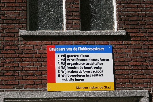 Bord in Rotterdamse straat. Christenfundamentalisten op Goeree Overflakkee maken hun buurt juist onveilig (foto: Pauline Krebbers) |