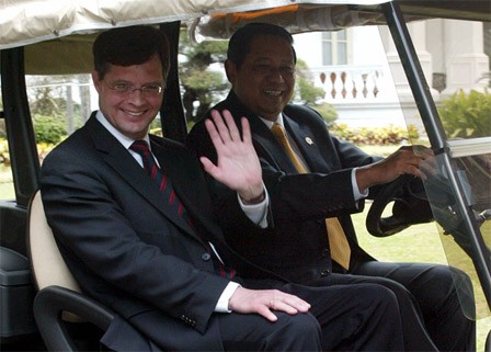 De premier in golfkarretje in voormalige kolonie Indonesië |